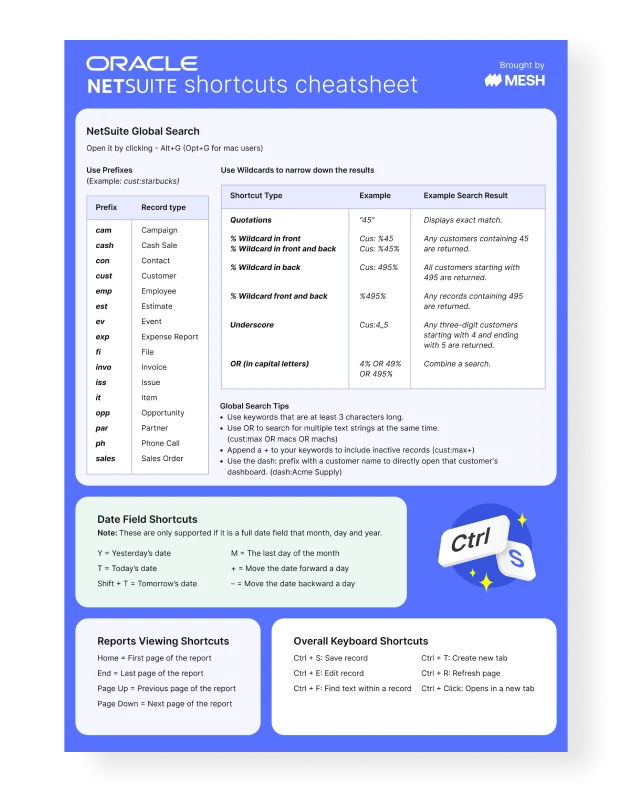 NetSuite Shortcuts Cheat Sheet